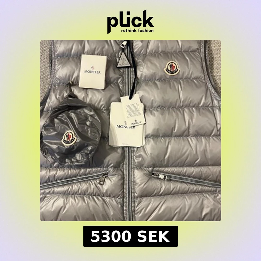Snygg quiltad dunväst från Moncler i metallic silver/grå med klassisk logotyp på bröstet. Västen har två fickor med dragkedja och en stilren, modern look. Materialet är lätt och glansigt, perfekt för lager-på-lager. Kommer med originalpåse och tags. Skick 10/10, aldrig använd och kvitto finns!