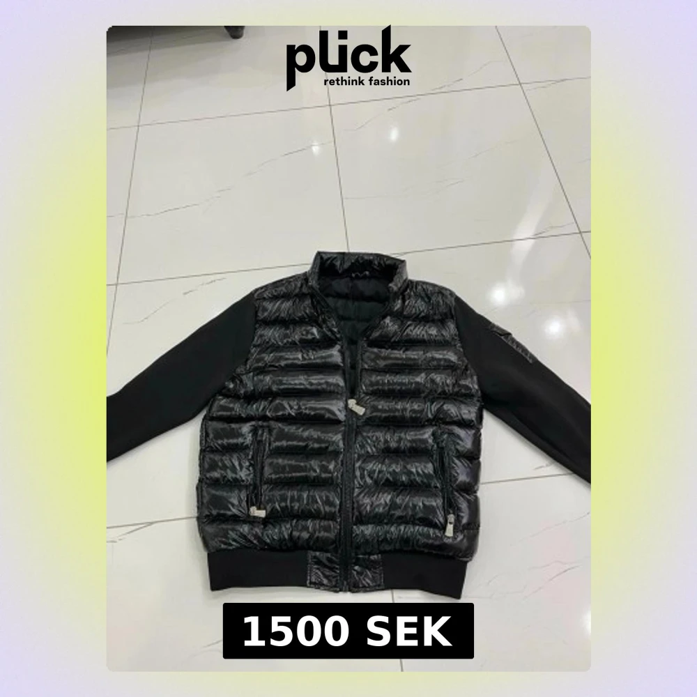 Snygg svart dunjacka från Moncler med quiltad kropp och släta ärmar. Jackan har dragkedja framtill, två sidofickor med dragkedja och ribbade muddar. Perfekt för kyliga dagar och ger en stilren look. Jackan är storlek 2XXL men den är små i storlek så den kan passa L