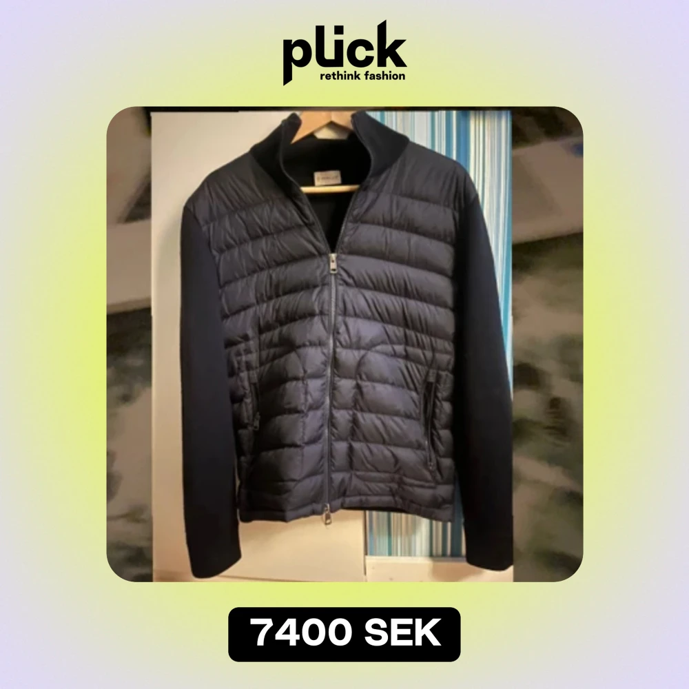 Marinblå Moncler cardigan Jackan. Är i utmärkt skick och har endast ett litet fel på klädhängaren vilket visas i sista bilden. Den är köpt för 9000 kr och jag har ett digitalt kvitto som bevis på äktheten. Priset är förhandlingsbart!