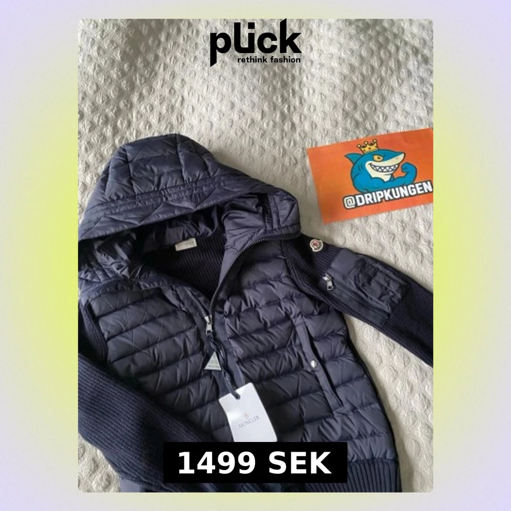 Navy Moncler Cardigan i dun. Storlek 2/M, tight passform.
