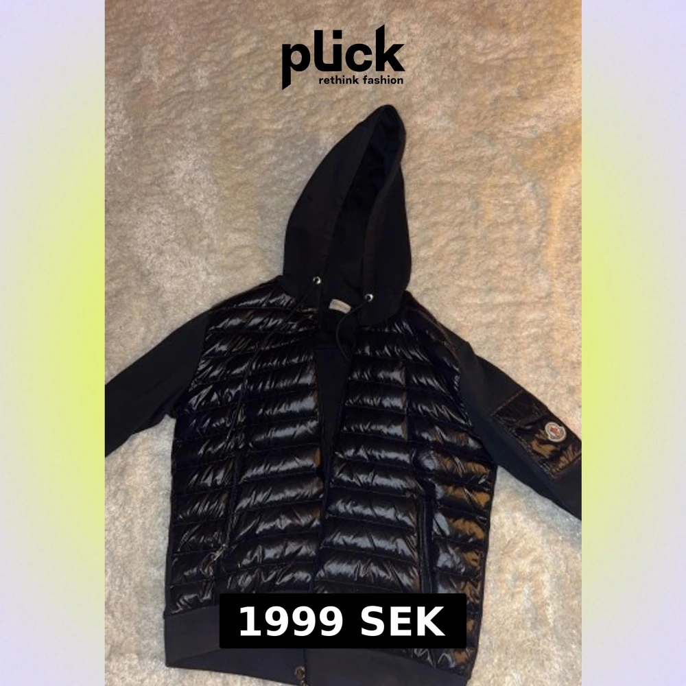 Svart pufferjacka från Moncler med glansig, quiltad framsida och slät baksida. Jackan har huva, dragkedja framtill och två sidofickor med dragkedja. På vänster ärm finns en ficka med Moncler-logga. Perfekt för dig som gillar streetstyle och exklusiva märken.
