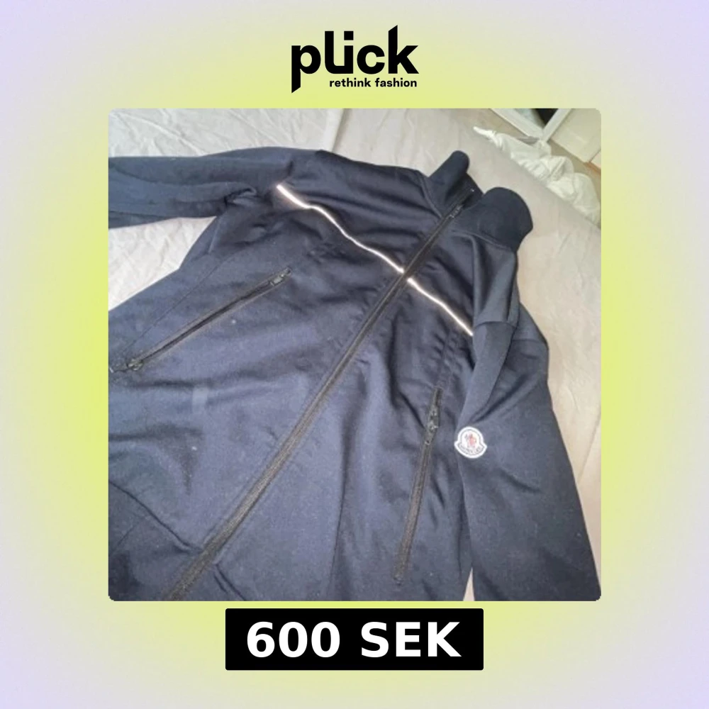 Snygg svart vindjacka från Moncler med hög krage och hel dragkedja framtill. Jackan har två snedställda fickor med dragkedja och en reflekterande detalj över bröstet. Klassisk Moncler-logga på ärmen. Perfekt för dig som gillar stilren och sportig look.