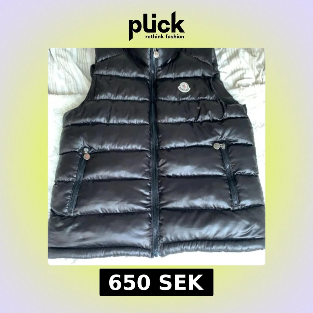 Snygg svart dunväst från Moncler med quiltad design och hög krage. Västen har två dragkedjefickor framtill och stängs med dragkedja. Perfekt att slänga över en hoodie eller tröja för extra värme. Klassisk Moncler-logga på bröstet, och den är oanvänd.