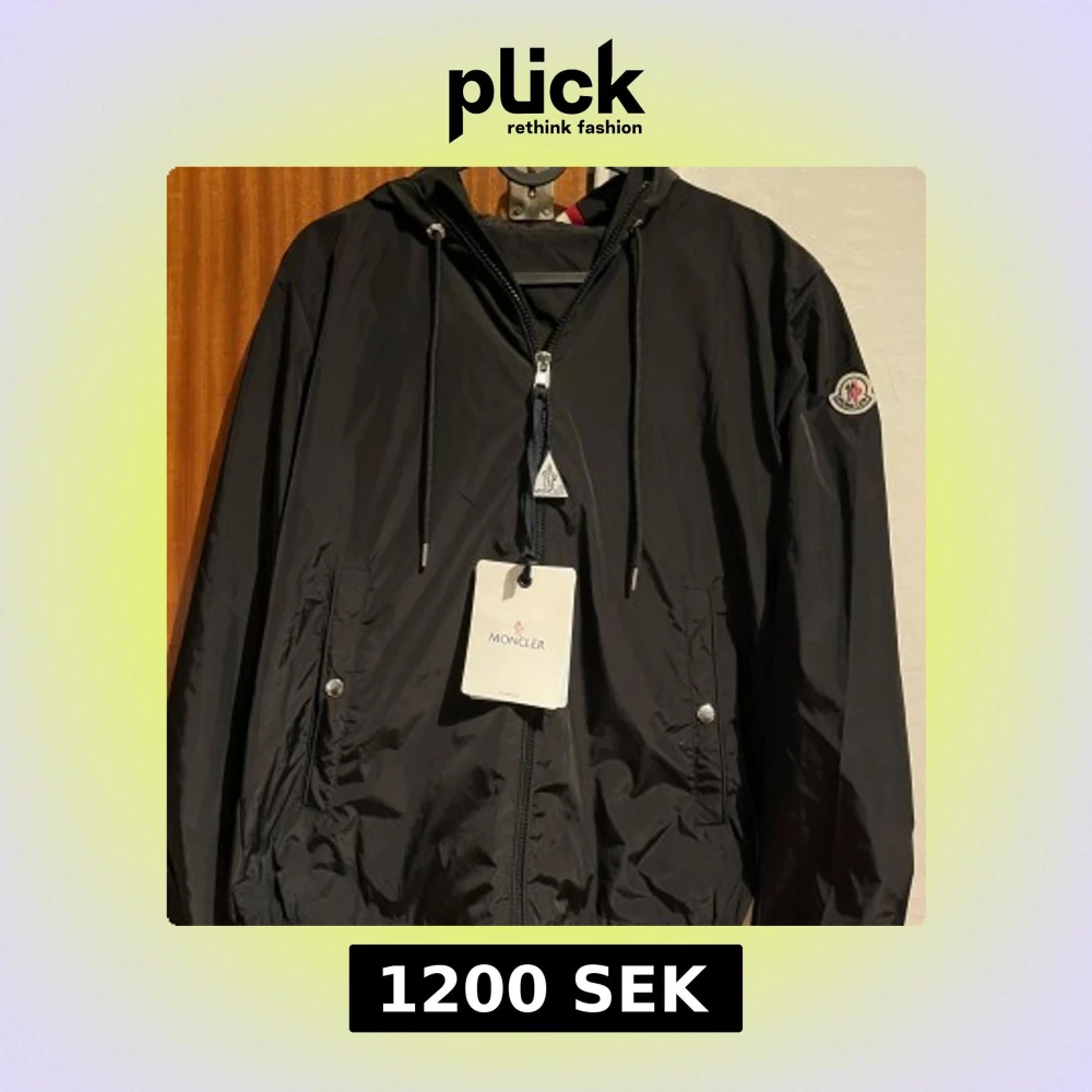 Snygg svart vindjacka från Moncler med huva och dragkedja. Storlek S, skick 10/10