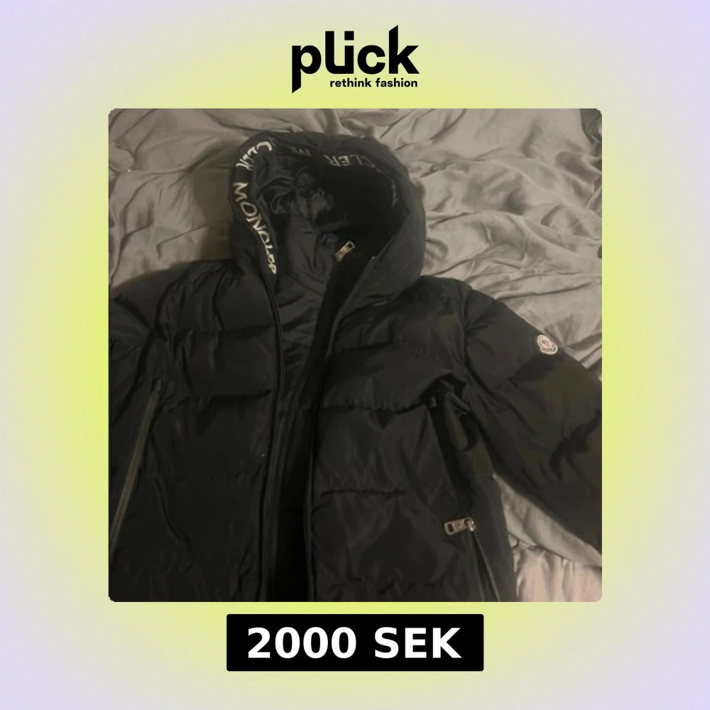 Säljer en svart pufferjacka från Moncler med huva och dragkedja. Jackan har logga på ärmen, stora vadderade partier och innerficka med röd dragkedja. Snyggt Moncler-tryck i luvan och klassisk design som håller dig varm under kalla dagar.