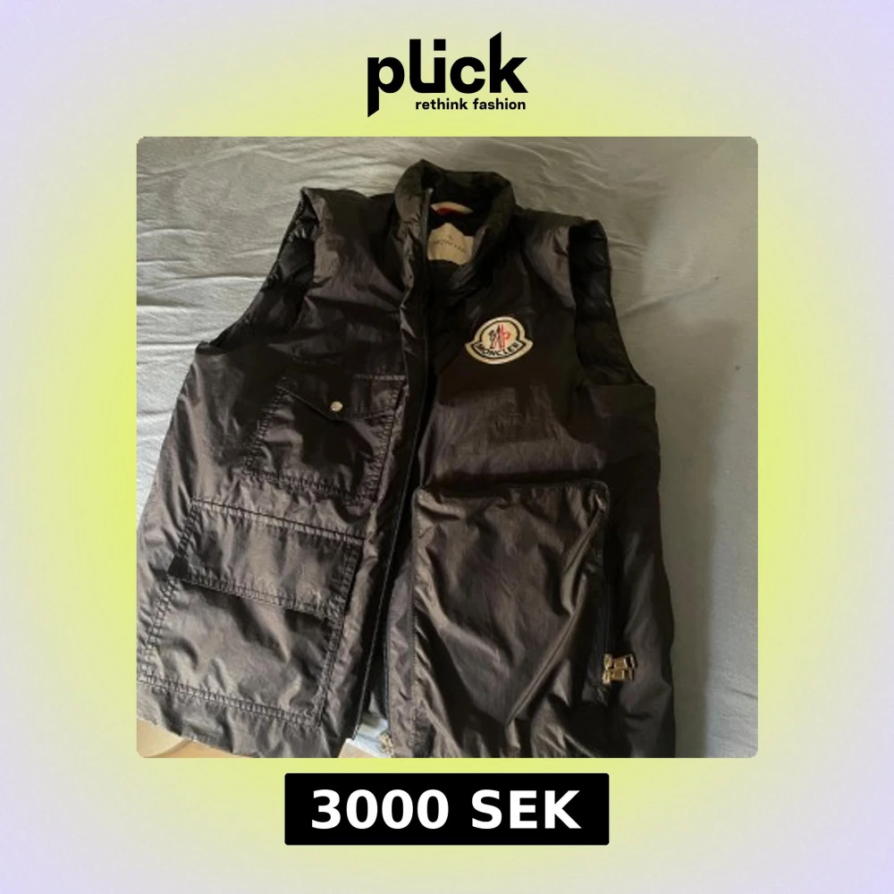 Säljer en svart dunväst från Moncler den heter Bourges Gilet 1952 med klassisk logga på bröstet. Västen har flera stora fickor framtill, dragkedja och hög krage. Den är quiltad och har en clean, sportig look som funkar till många outfits. Nypris är 7000kr. Vid frågor är det bara att skriva.