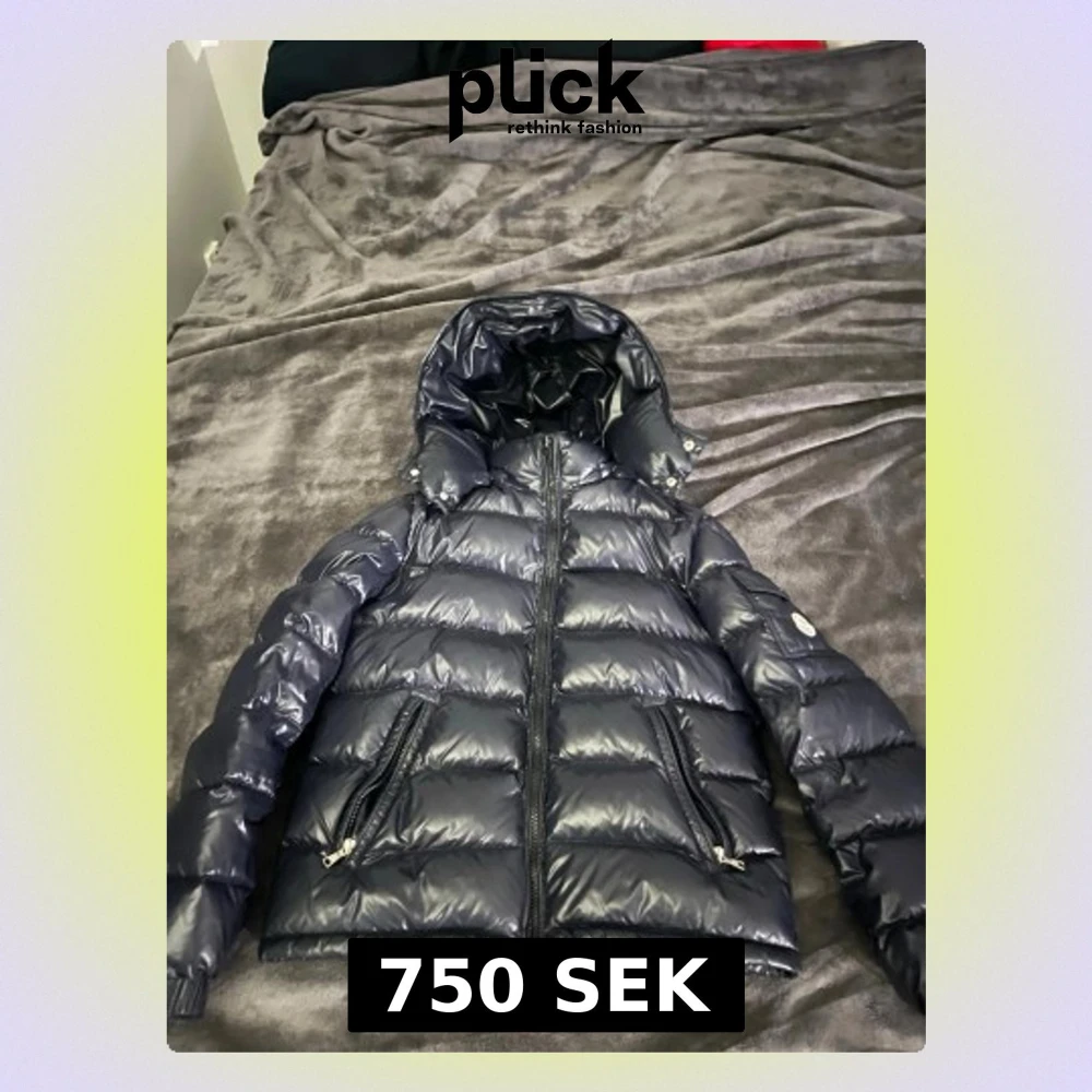 Säljer en mörkblå pufferjacka från Moncler med glansig finish och huva. Jackan har två snedställda fickor med dragkedja och ribbade muddar vid ärmslut. Perfekt för kalla dagar och har en riktigt snygg streetstil. Den är dock i S alltså en 1a samt är den äkta. Skriv för fler frågor