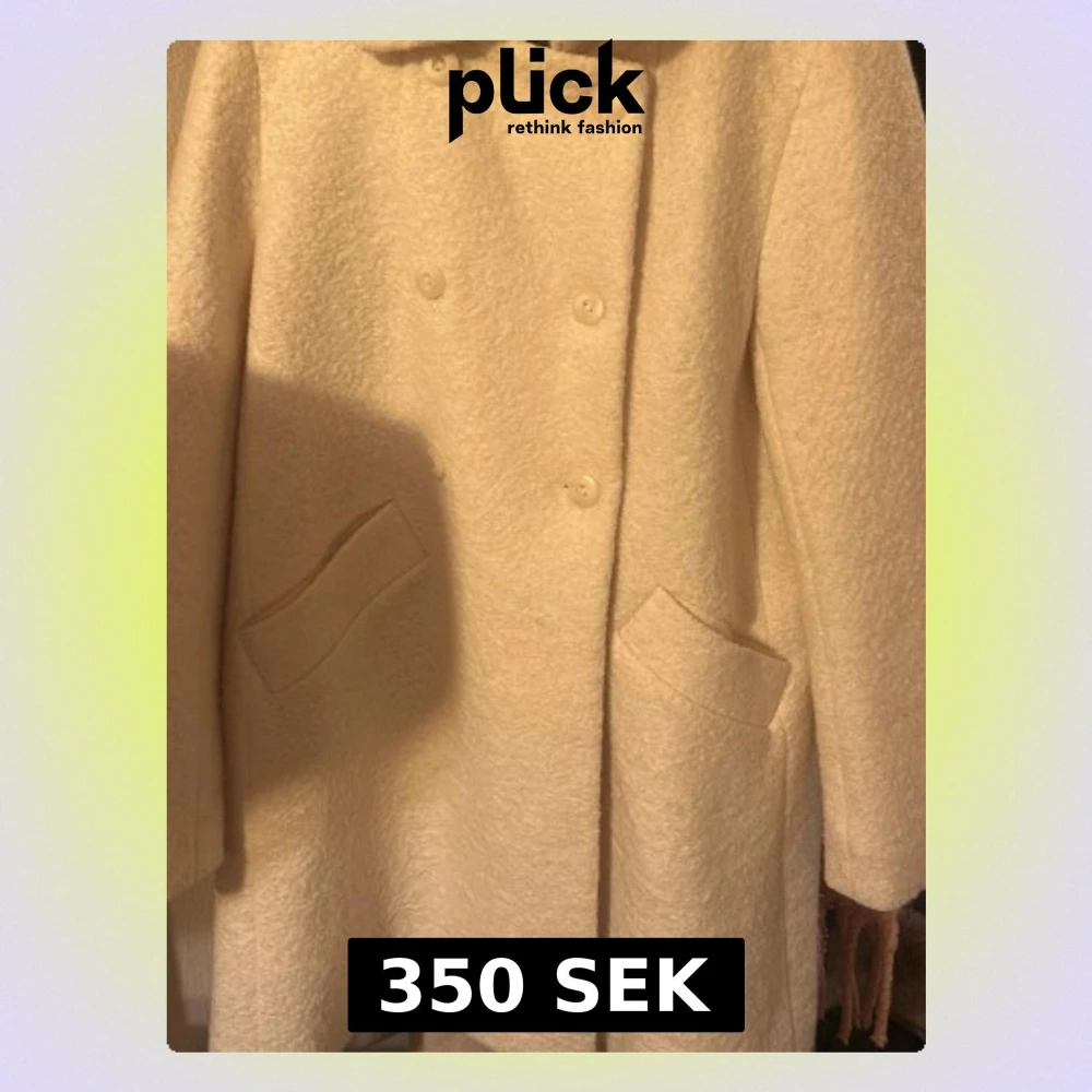 Säljer en beige skepparkavaj i ullmix med dubbelknäppning och stora fickor framtill. Jackan har en mjuk, lite fluffig yta och är helfodrad för extra värme. Perfekt för dig som vill ha en klassisk och stilren look under höst och vinter.