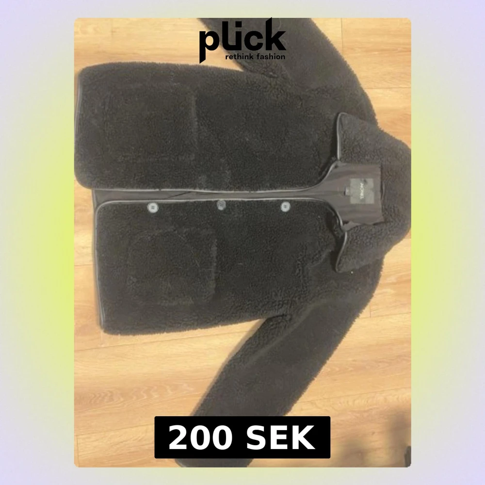 Mysig svart teddyjacka från Monki med stora framfickor och knäppning framtill. Jackan har klassisk krage och är tillverkad i ett fluffigt teddy-material som håller dig varm. Perfekt för kyliga dagar och enkel att styla till olika outfits.