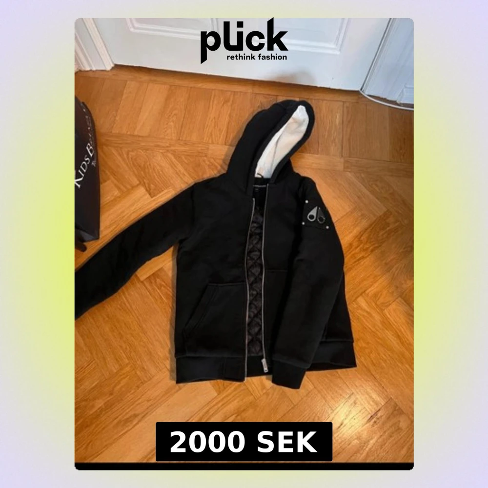Säljer en svart hoodiejacka från Moose Knuckles i storlek (XL BARN). Passar XS, liten S Jackan har quiltat innerfoder, dragkedja framtill och en mysig huva fodrad med vitt teddytyg. Snygg metallogo på ärmen och praktiska fickor framtill. Perfekt för dig som vill ha en stilren och bekväm jacka. Inga defekter skick som nytt, scanna NFC för autentisering. Känn dig fri att komma med frågor!💛