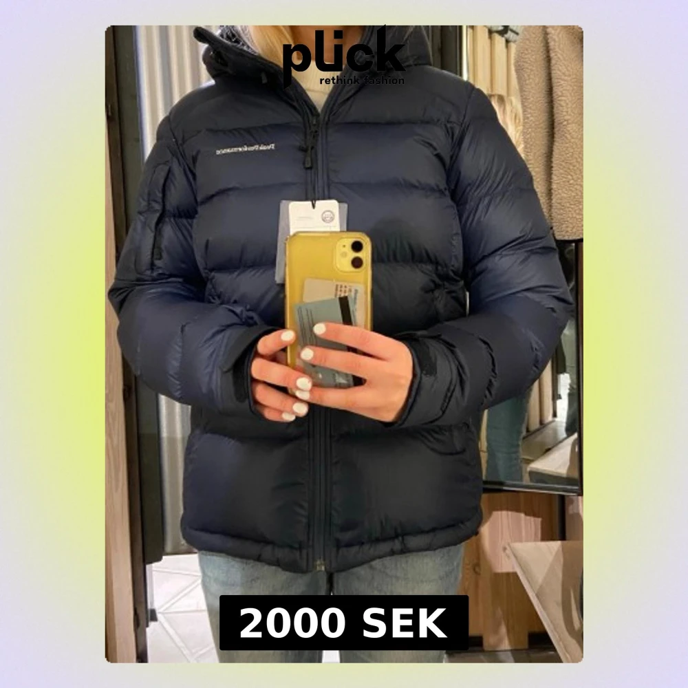 Säljer en mörkblå dunjacka från Peak Performance med huva och dragkedja framtill. Jackan är använd flertal gånger men har inga defekter någon stans.