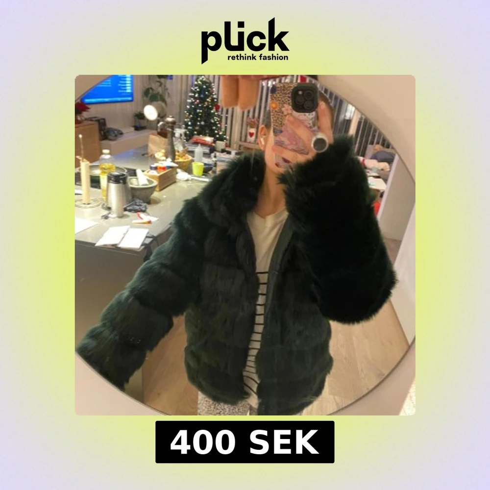 Säljer en as snygg mörkgrön pälsjacka från NLY Trend. Jackan har en fluffig och lyxig look med långa ärmar och en mjuk känsla. Perfekt för att hålla sig varm💚💚köpte på sellpy, därav etiketten på.
