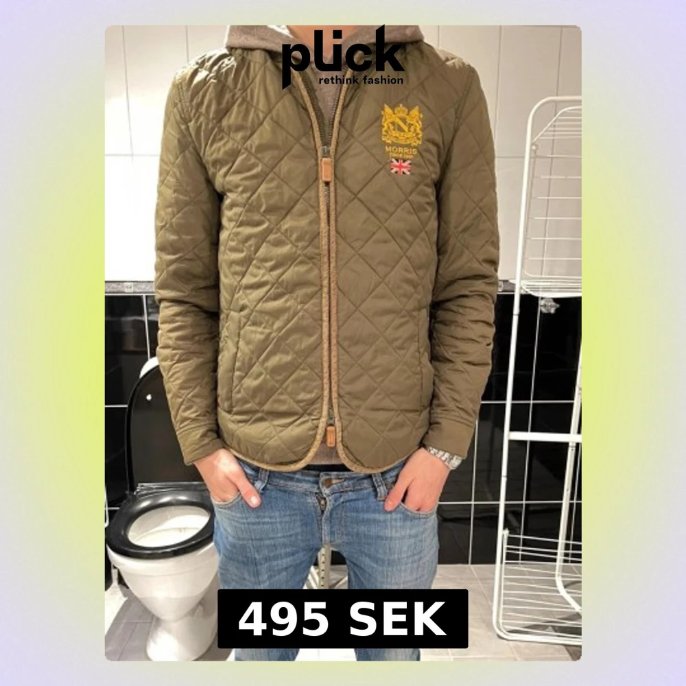 Snygg olivgrön quiltad jacka från Morris med broderad logga och brittisk flagga på bröstet. Jackan har dragkedja framtill och en klassisk, tidlös look. Perfekt för dig som gillar stilrena och bekväma jackor.