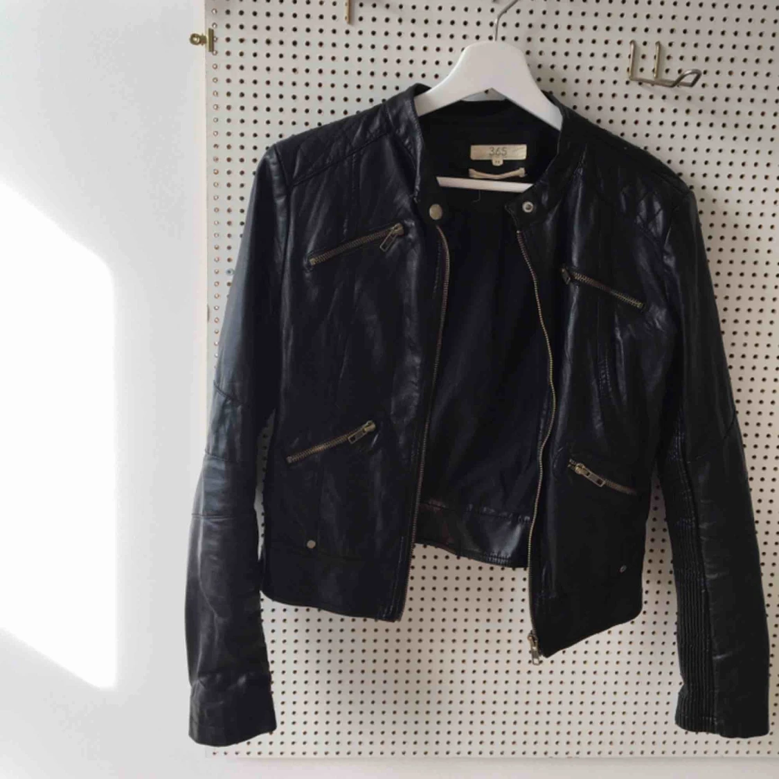 En snygg skinnjacka (inte äkta skinn dock) i bra skick från 365 köpt på MQ för typ 800 kr har jag för mig! Pris kan diskuteras, köpare står för frakt om vi inte kan mötas upp!