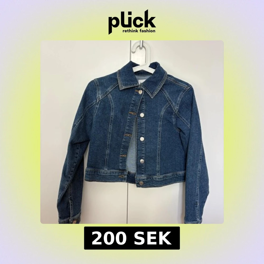 Snygg blå jeansjacka från NA-KD med klassisk krage och silverfärgade knappar framtill. Jackan har kontrastsömmar och är croppad i modellen, vilket ger en cool vibe. Perfekt att slänga över en t-shirt för en chill look.