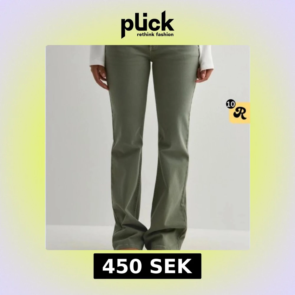 Snygga gröna jeans från Nelly, dom äf upplaggda i benen så dom passar nån runt 163. Är it alls använda så mycket