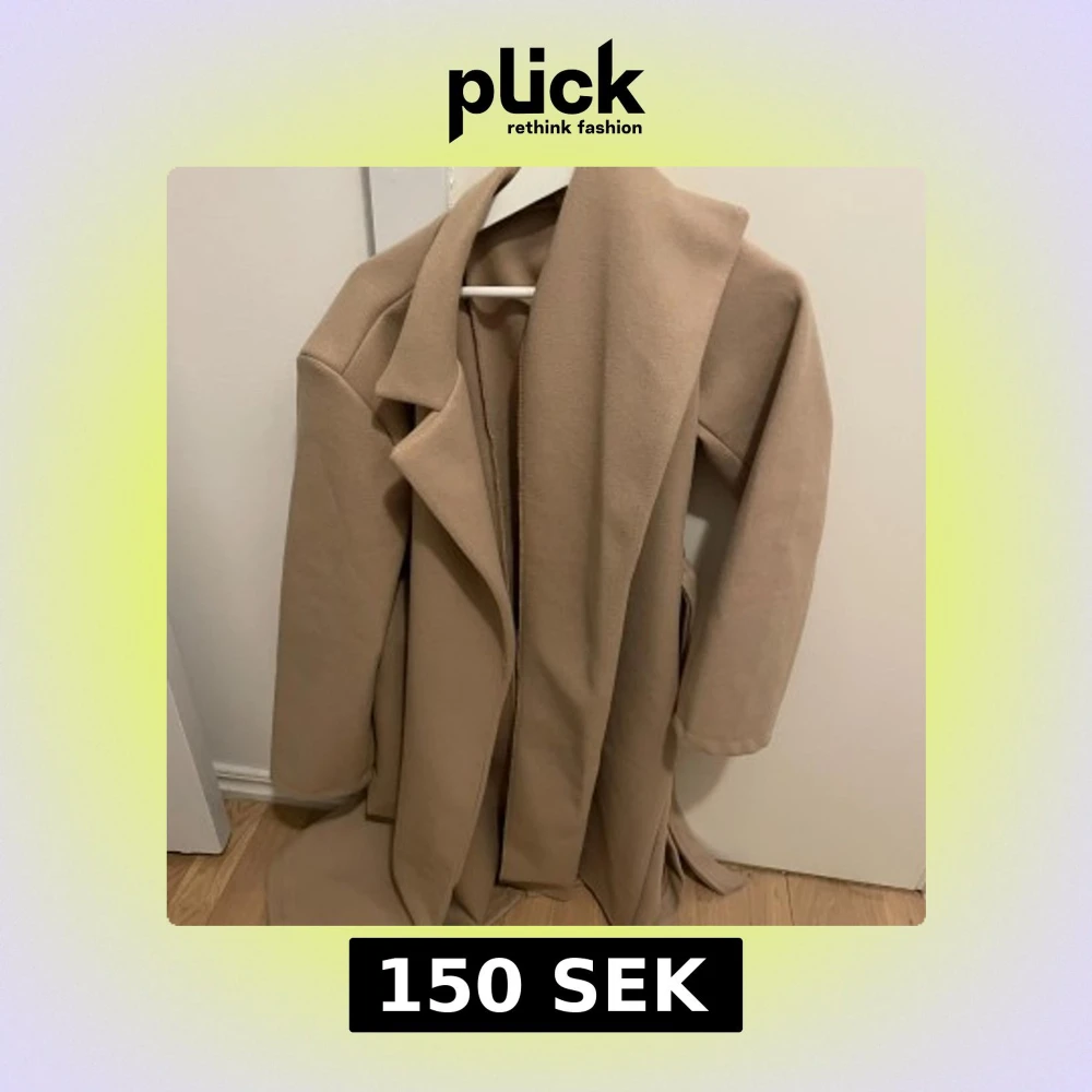 Säljer en stilren beige kappa med knytband i midjan. Den har en klassisk design med långa ärmar och en mjuk, bekväm passform. Perfekt för kyligare dagar och ger en elegant touch till din outfit.