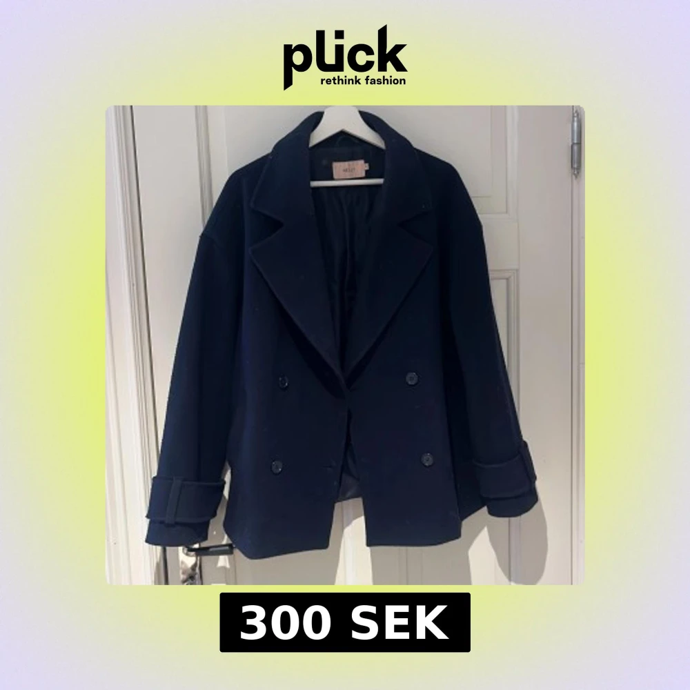 Snygg mörkblå kappa från Nelly med dubbelknäppning och breda slag. Perfekt för kyligare dagar med sin stilrena design och långa ärmar. Defekt inuti kappan, söm som spruckit men går självklart att laga