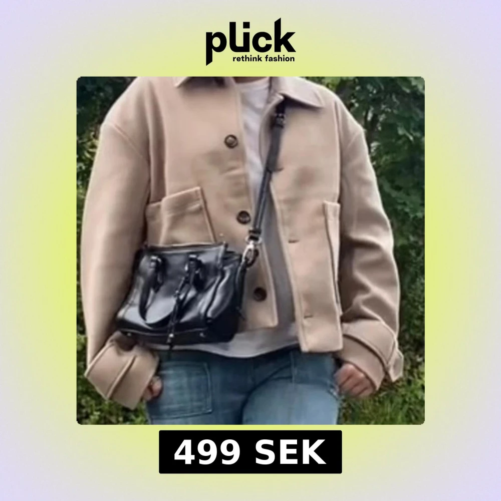 Säljer en beige kappa med oversized passform och stora fickor framtill. Jackan har klassisk krage, knäppning med knappar och långa ärmar. Perfekt för dig som gillar stilren och enkel design.
