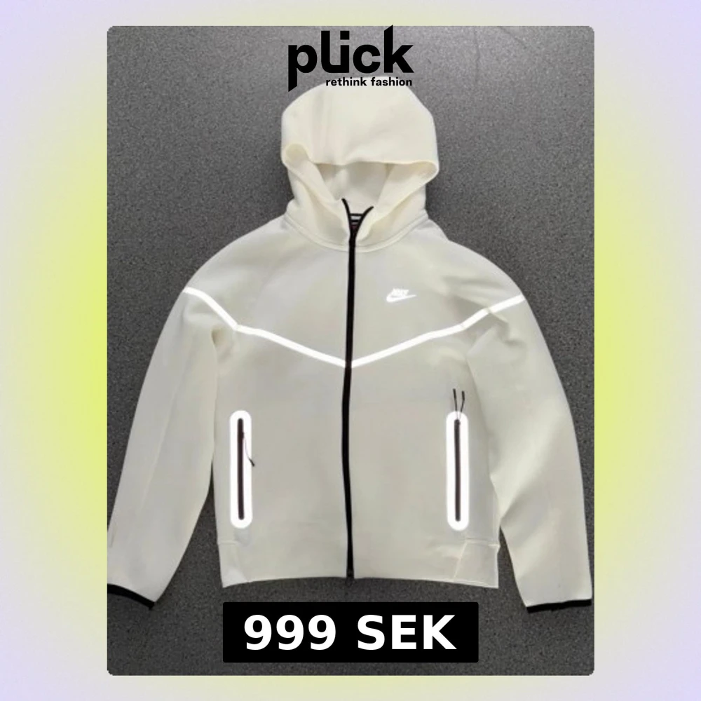Snygg vit hoodie från Nike med hel dragkedja och reflekterande detaljer på bröstet och vid fickorna. Tröjan har huva, svarta dragkedjor och logga på bröstet. Perfekt för dig som vill sticka ut och synas i mörkret. Tillverkad i ett mjukt och stretchigt material.