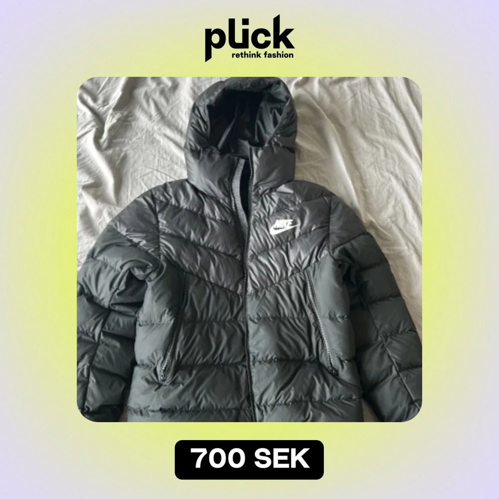 Säljer den här snygga Nike jackan då jag inte använt mycket den är i (9/10) skick då den har nån lätt fläck (går tvätta bort) den är lätt, skön och bra varm till vintern Nypris 1400 Jag säljer för 600