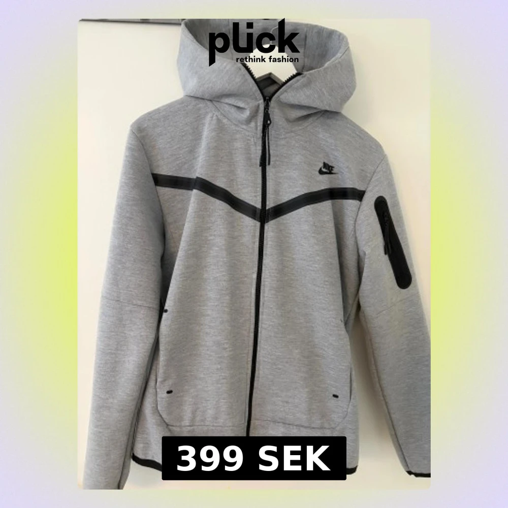 Snygg grå vindjacka från Nike med svart logga på bröstet och svarta detaljer längs bröstet. Jackan har hel dragkedja, huva och praktisk ficka med dragkedja på ärmen. Perfekt för dig som gillar sportig och clean stil. Är liten i storleken.