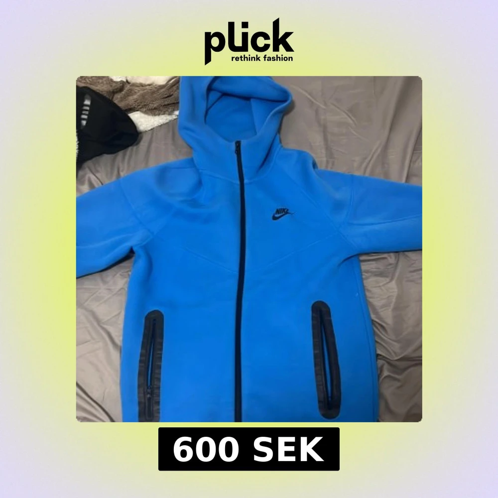 Nike hoodiejacka i klarblå färg med hel dragkedja framtill och två fickor med svarta detaljer. Jackan har huva och svart Nike-logga på bröstet. Perfekt för dig som gillar sportig och clean stil.