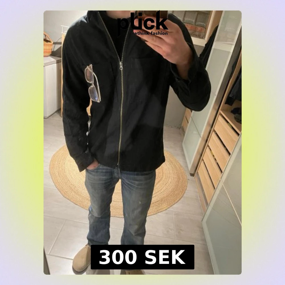 Svart jacka med hel dragkedja framtill och bröstficka. Jackan har en enkel, rak passform och är långärmad. Perfekt för dig som gillar en stilren och avslappnad look. Nypris 600. Hör av dig vid minsta lill fundering!