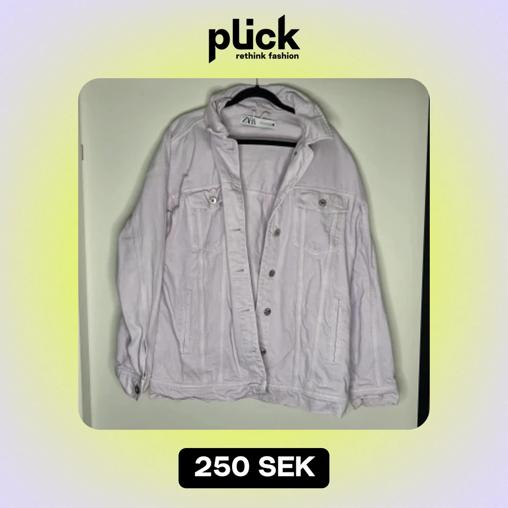 Detta är en längre jeansjacka i pastell lila, ” hålen” är en del av designen och jag använde den sällan. Storlek M från Zara