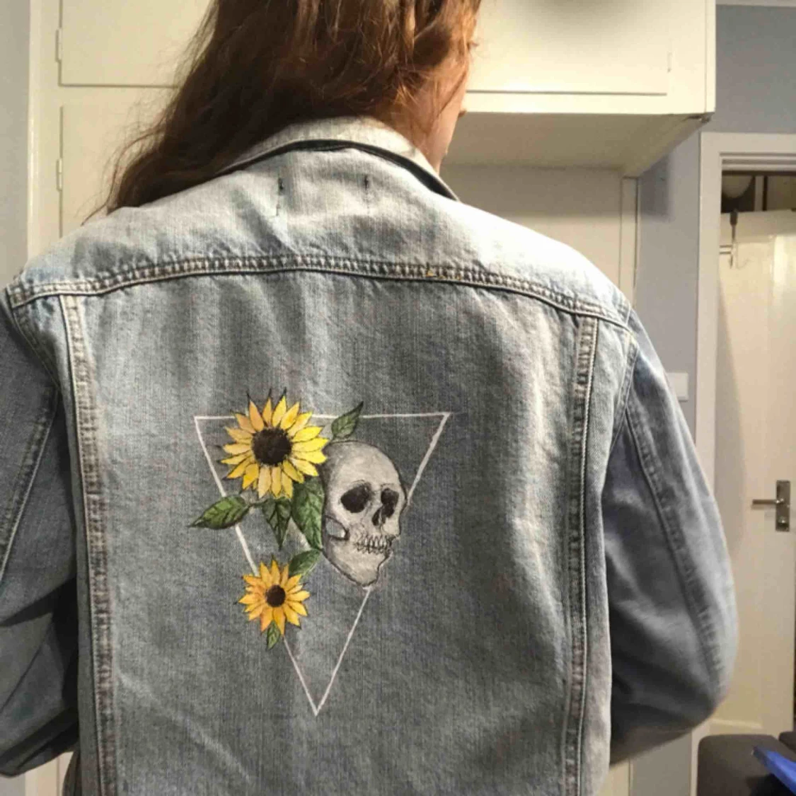 Oversized jeans jacka med handmålat motiv på Kan mötas upp i Stockholm vid frakt betalat köparen den 😌