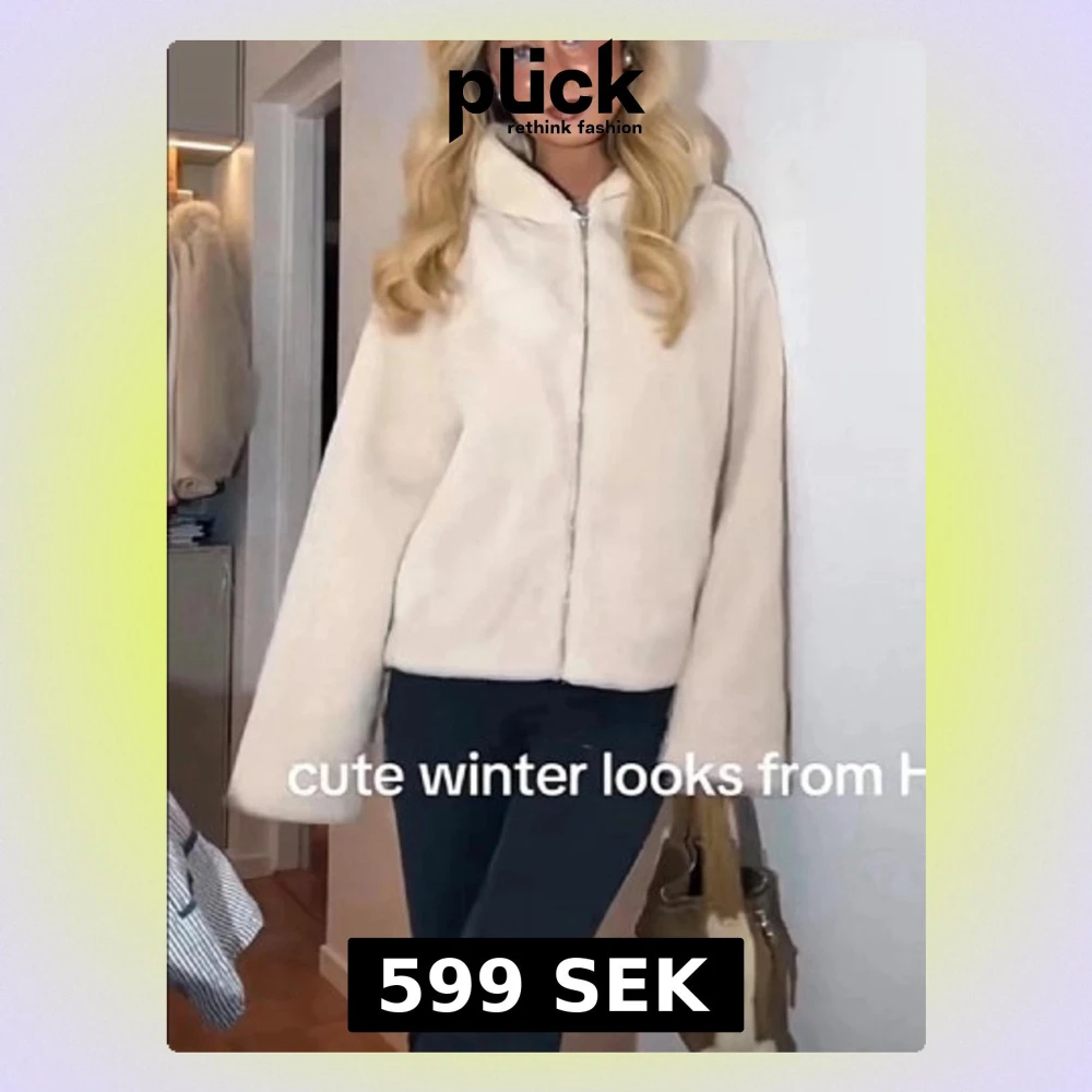 Intessekoll!! Helt ny med lappar kvar. Supermjuk och fluffig beige teddyjacka med dragkedja framtill och hög krage. Jackan har en loose passform och långa ärmar, perfekt för kalla dagar när du vill vara både varm och snygg.