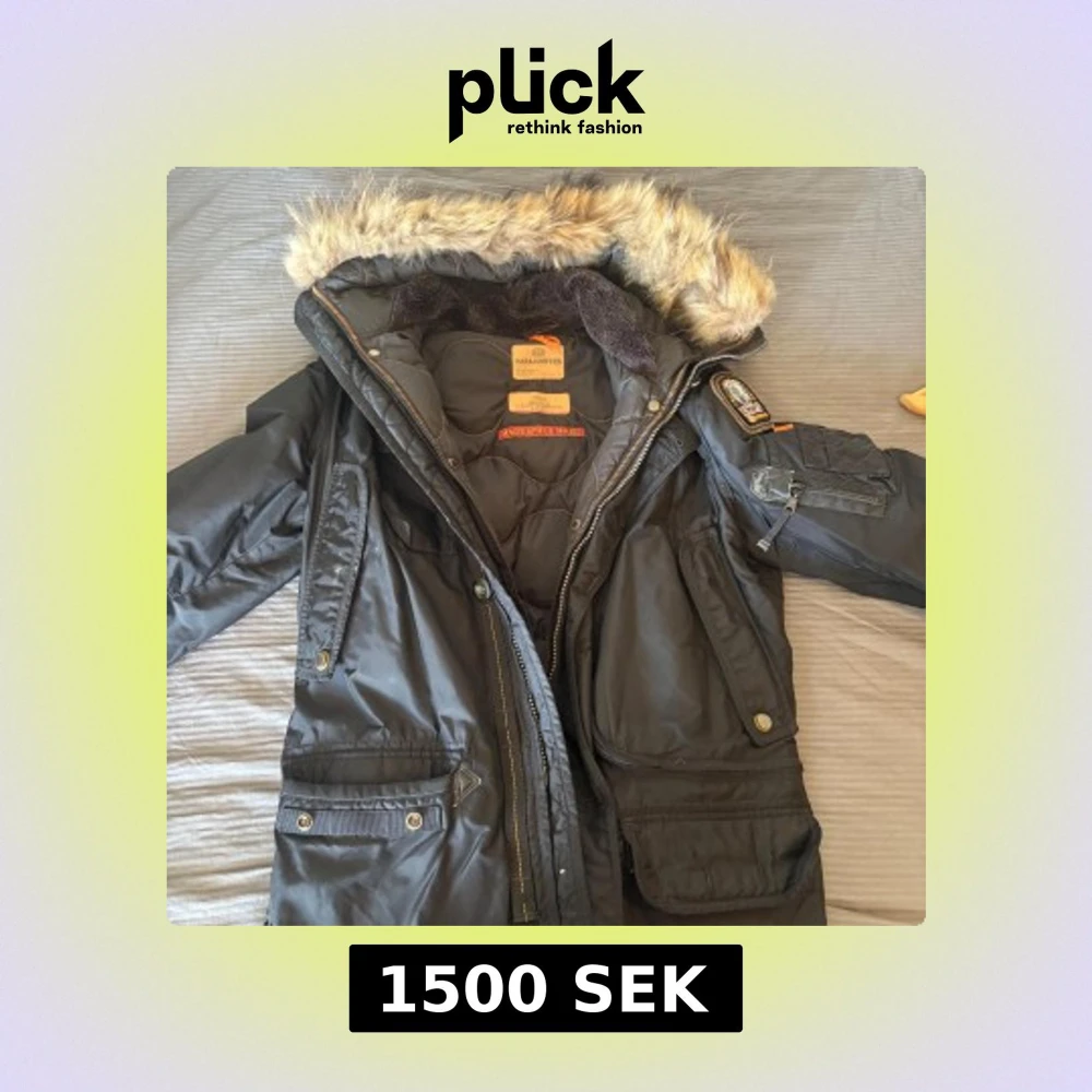 Säljer en svart Parajumpers parkajacka i storlek small med snygg päls på huvan och flera praktiska fickor. Jackan har coola detaljer som patch på ärmen, dragkedja och knappar. Perfekt för kalla vinterdagar och har en riktigt streetig vibe.