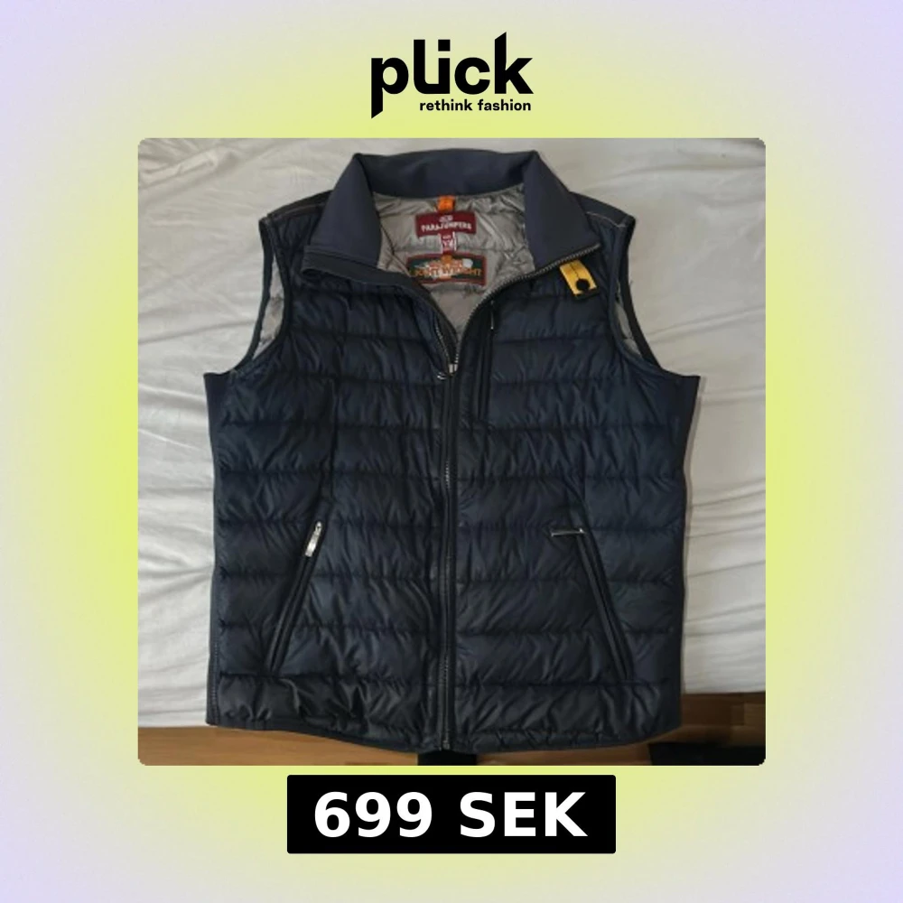 Säljer en mörkblå dunväst från Parajumpers med två dragkedjefickor framtill och klassisk gul detalj vid kragen. Västen är superlätt och har quiltad design samt hög krage. Perfekt för lager-på-lager under kyliga dagar.