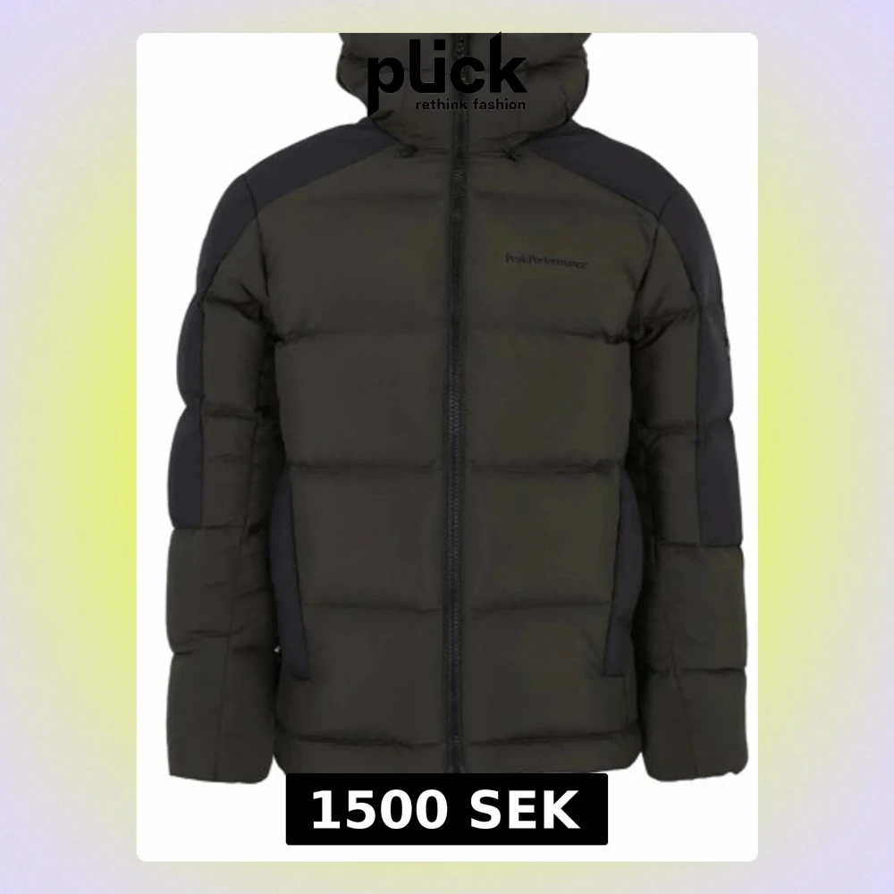 Säljer en grön pufferjacka från Peak Performance med svarta detaljer på axlar och sidor.Haft den på mig i mindre än en timme, den är något mindre i storlek. Jackan har huva, dragkedja framtill och diskret logga på bröstet. Perfekt för kalla dagar och riktigt skön att bära. Klassisk boxig passform och stilren look. Kostade 3400 vid inköpt. Inget kvitto därv priset