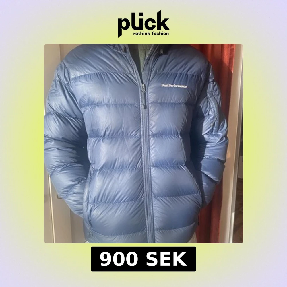 Säljer en blå dunjacka från Peak Performance. Inköpt höst 2023. Använd 1 säsong. Varm, riktigt dun.