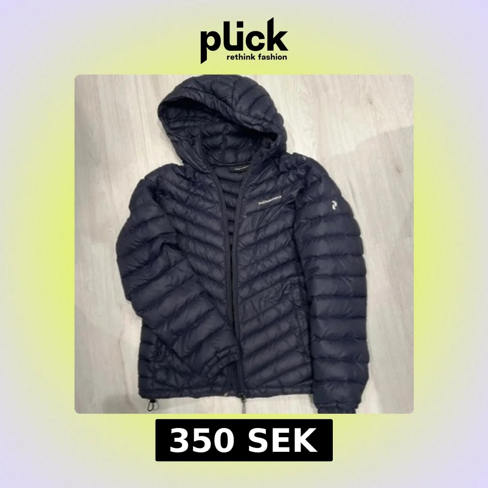 Snygg mörkblå dunjacka från Peak Performance med huva och dragkedja. Jackan har quiltad design och logga på bröstet. Perfekt för kalla dagar och har en stilren look som funkar till det mesta. Modellen heter Frost och är lätt att bära. Den har ett par hål men annars i bra skick.