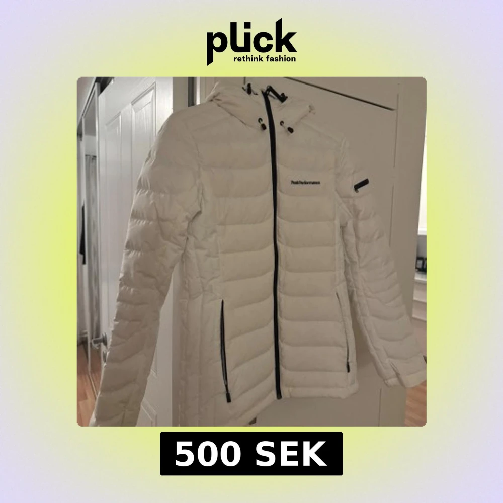 Säljer en snygg vit pufferjacka från Peak Performance med huva och svarta detaljer. Jackan har dragkedja framtill, två fickor med dragkedja och diskret logga på bröstet. Perfekt för kalla dagar när du vill hålla stilen.