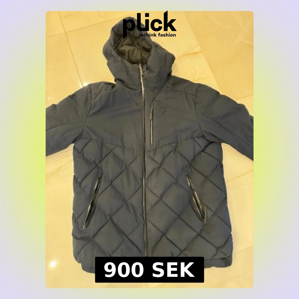 Säljer en mörkblå pufferjacka från Peak Performance. Jackan har quiltad design och har flera fickor.