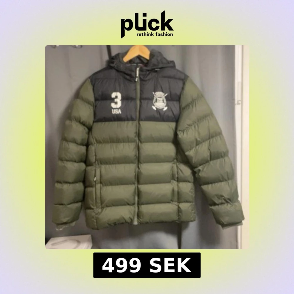 Säljer en grön och svart pufferjacka från Vinson Polo Club med huva och dragkedja. Jackan har tryck med klubbens logga och siffran 3 på bröstet. Fodrad och perfekt för kalla dagar, med två sidofickor och sportig look.