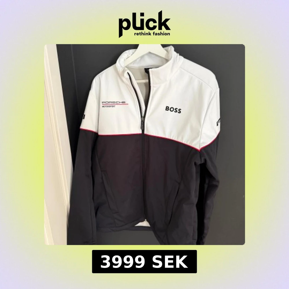 Snygg vindjacka från Porsche Motorsport och BOSS i svart och vitt med röda detaljer. Jackan har dragkedja, hög krage och loggor på bröst, rygg och ärmar. Perfekt för dig som gillar racing. Denna vara har slutat säljas nu och finns endast få kvar därav pris! ( ett par bränn märken på jackan men inget som syns jätte mycket )