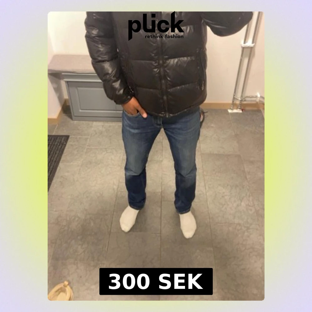 Säljer en svart pufferjacka med huva och dragkedja framtill. Jackan har två snedställda fickor med dragkedja och en extra ficka på ärmen. Materialet är glansigt och quiltat, perfekt för kalla dagar. Passar dig som vill ha en varm och stilren jacka.