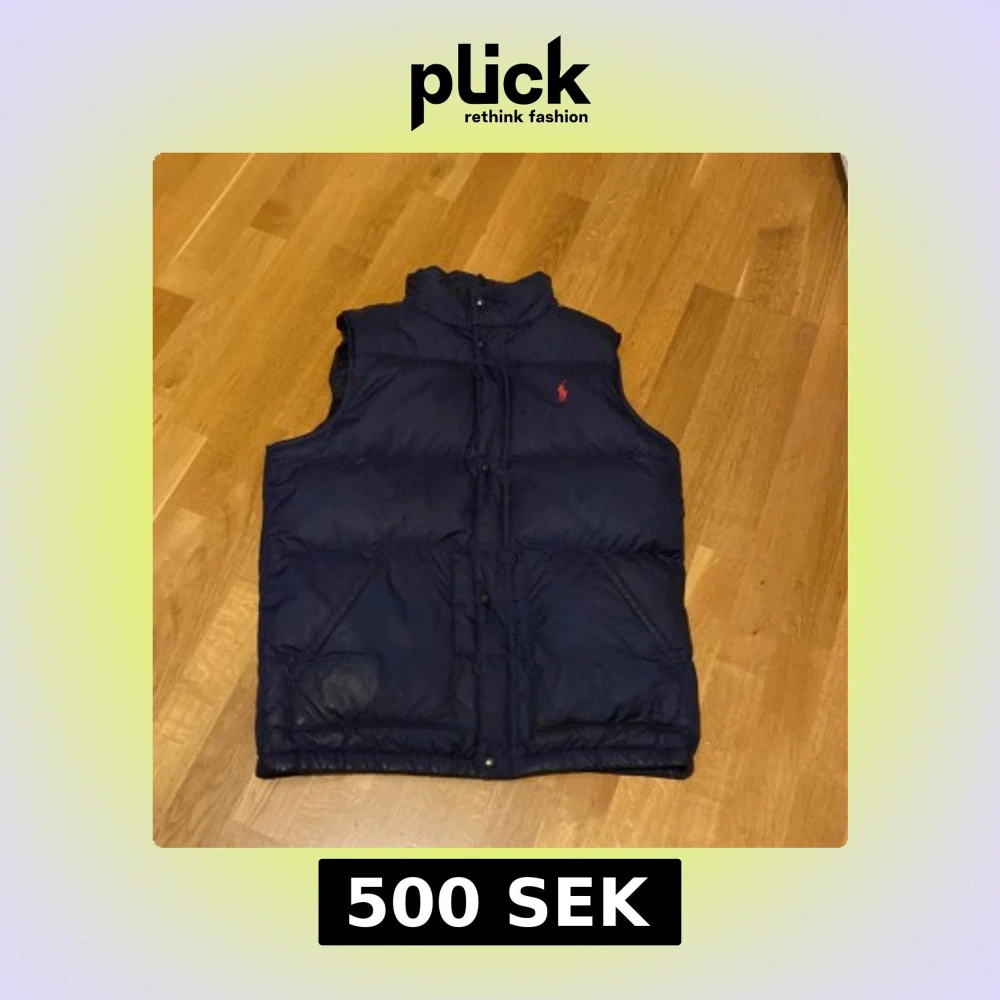 Snygg mörkblå dunväst från Ralph Lauren med klassisk röd logga på bröstet. Västen har hög krage, två snedställda fickor och stängs med både dragkedja och knappar. Perfekt för lager-på-lager och chill höst- eller vinterstil. Vesten är dock ganska gammal och har lite defekter men inget man tänker på. Luva ingår också. Hör gärna av vid intresse