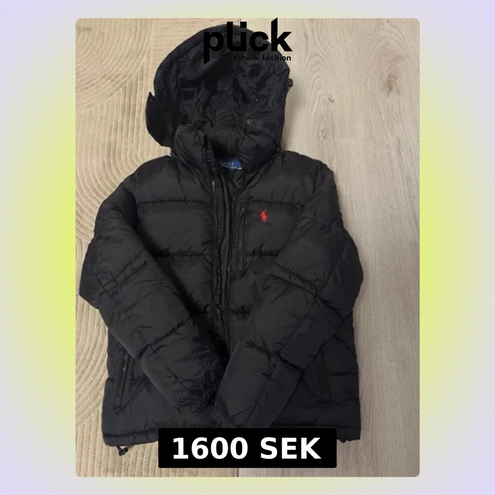 Svart pufferjacka från Polo Ralph Lauren med huva och röd broderad logga på bröstet. Jackan har dragkedja framtill och två sidofickor med dragkedja. Perfekt för kalla dagar och har en schysst, lite puffig look.