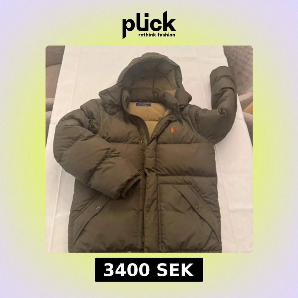 Säljer en olivgrön pufferjacka från Polo Ralph Lauren med huva och orange broderad logga på bröstet. Jackan har dragkedja, tryckknappar och två stora fickor framtill. Fodret är beige och jackan är riktigt fluffig och varm, perfekt för kalla dagar. Pris kan även diskuteras.