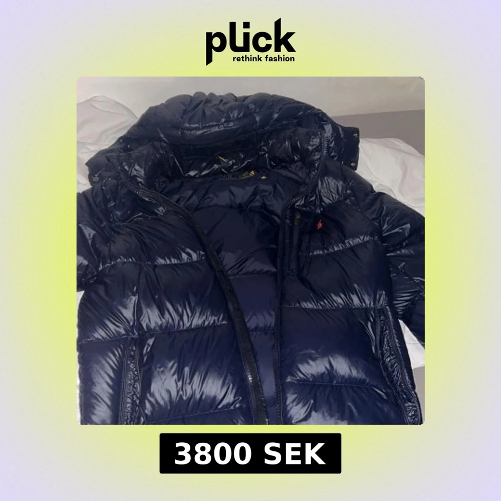 Säljer en glansig mörkblå pufferjacka från Ralph Lauren med huva och dragkedja. Jackan har en klassisk quiltad look och är perfekt för kalla dagar. Detaljerad med liten röd logga på bröstet och praktiska fickor. Snygg och stilren design som sticker ut.