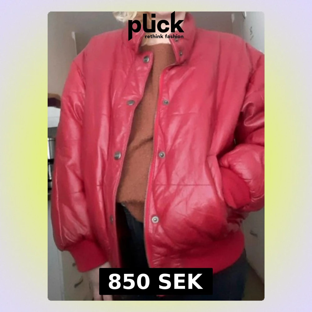 Säljer en röd quiltad skinnjacka från Petroff med cool retrostil. Jackan har ribbade muddar, tryckknappar och dragkedja framtill. Insidan är fodrad med röd satin och har ett stort Petroff-tryck. Perfekt för dig som vill sticka ut med en unik jacka!