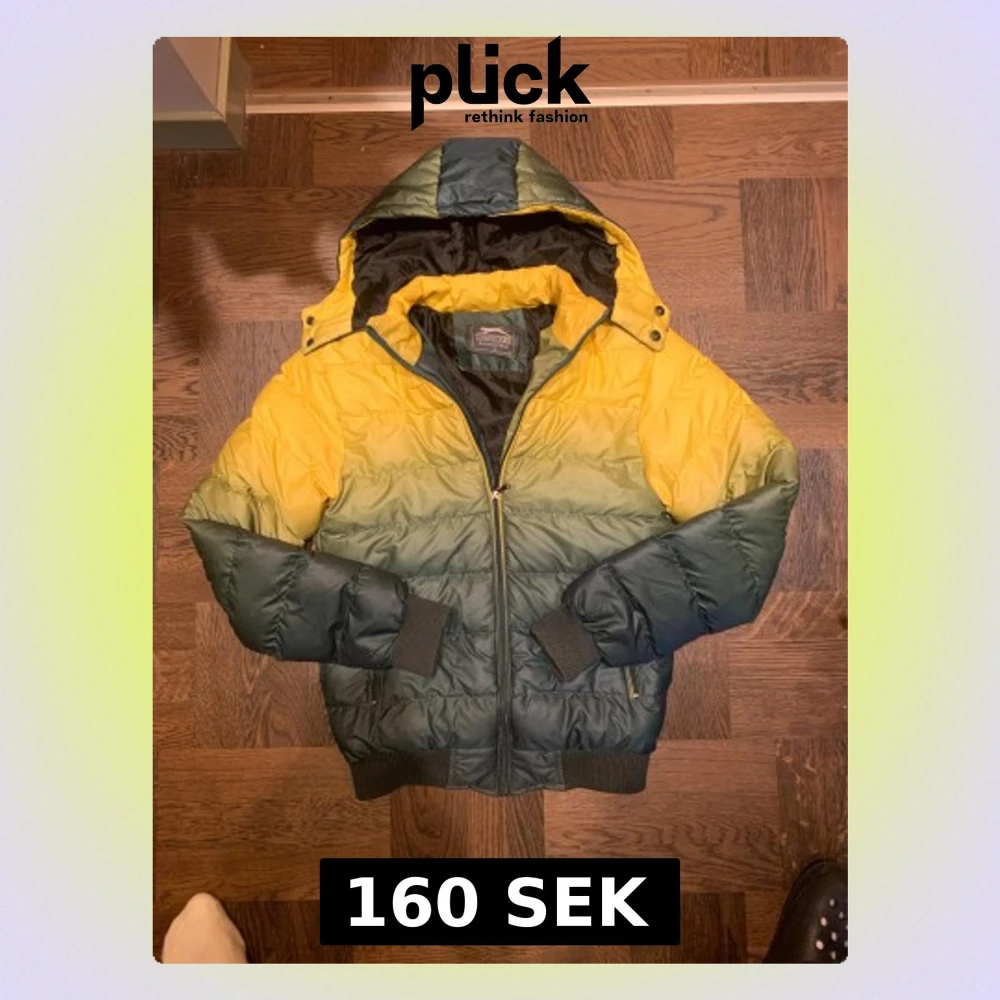 Säljer en fet pufferjacka från Slazenger i storlek S. Knappt använt. Jackan har cool färgskiftning från gul upptill till mörkgrön nedtill, med huva och dragkedja framtill. Huvan går att ta bort kolla bild 4. Ribbstickade muddar vid ärmar och nederkant, samt praktiska fickor med dragkedja. Perfekt för kalla dagar. Vid frågor, hör av dig!