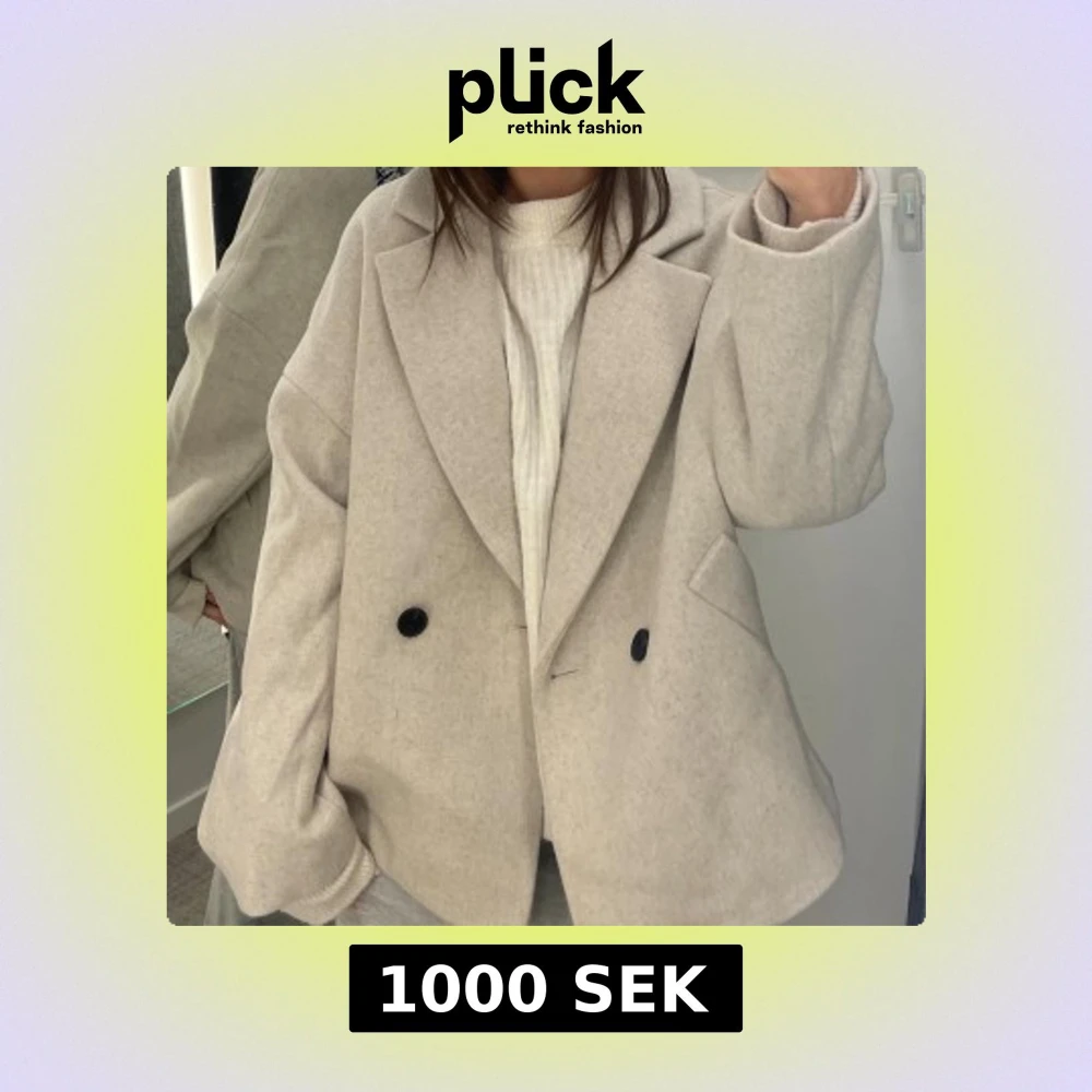 Beige oversized kavajjacka med ull