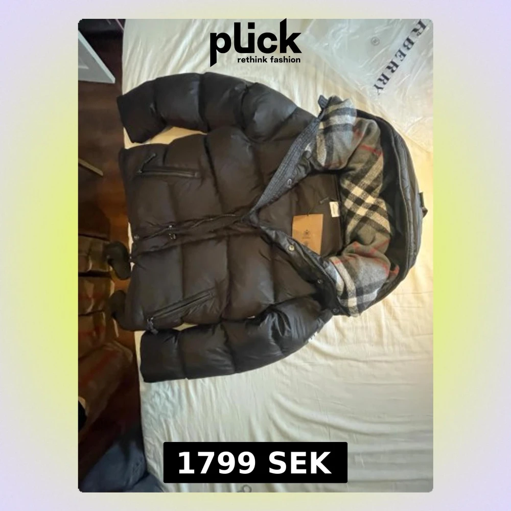 Säljer en svart pufferjacka från Bb i storlek S. Jackan har klassiskt rutigt foder i huvan, dragkedjor på fickorna och en snygg, puffig siluett. Perfekt för kalla dagar och riktigt stilren med Burberrys ikoniska detaljer.