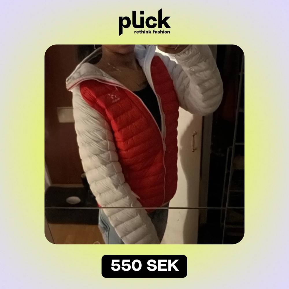 Säljer en snygg och varm dunjacka från Haglöfs i rött och vitt. Jackan har en dragkedja framtill och en praktisk huva. Perfekt för kyliga höst- och vinterdagar. Den är i mycket bra skick och passar perfekt för utomhusaktiviteter.